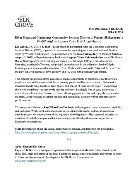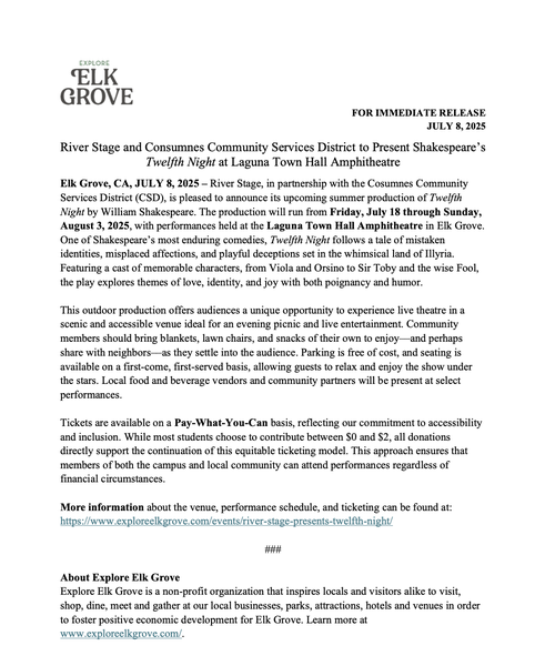 Tickets are on sale now for the 5th Anniversary of Uncorked & Uncapped! Join us on September 19, 2025, from 6:00–9:00 PM at the stunning new venue, Valley Hi Country Club, for a 21+ elevated tasting experience. Presented by Explore Elk Grove and Sky River Casino, this year’s event features culinary bites from Valley Hi’s Executive Chef Mix Rodriguez, paired with sips from Elk Grove’s local wineries and breweries. Enjoy live music by local favorite Under the Bus, a live DJ to start the evening, h...